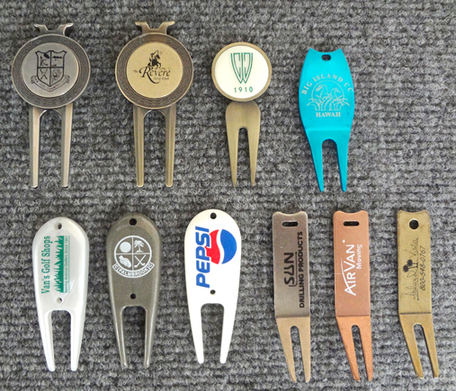 Metal Tools with removable ball marker. Printed with one or two colors.Plastic Repair Tools are in durable plastic and available in a variety colors. Click here to see a color chart.